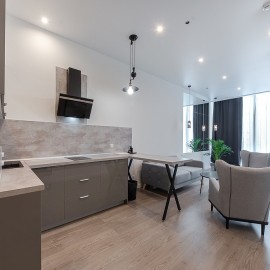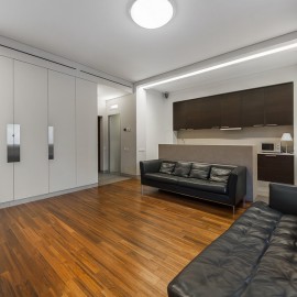 Арт. 49856317. Предлагается стильная квартира с дизайнерским ремонтом. Квартира расположена в новом (2004 года постройки) доме с подземным паркингом. По планировке: единое пространство и включает в себя гостиную, кухонную зону, а также спальню с рабочей зоной, ванная комната,...