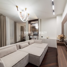 Арт. 48907299. Предлагаетяс квартира в элитном клубном доме. Дизайнерский ремонт с использованием дорогостоящих натуральных материалов. Планировка: просторная гостиная, кухня-столовая, две спальни, кабинет, ванная комната с ванной и душевой, второй санузел с душем, холл. В...