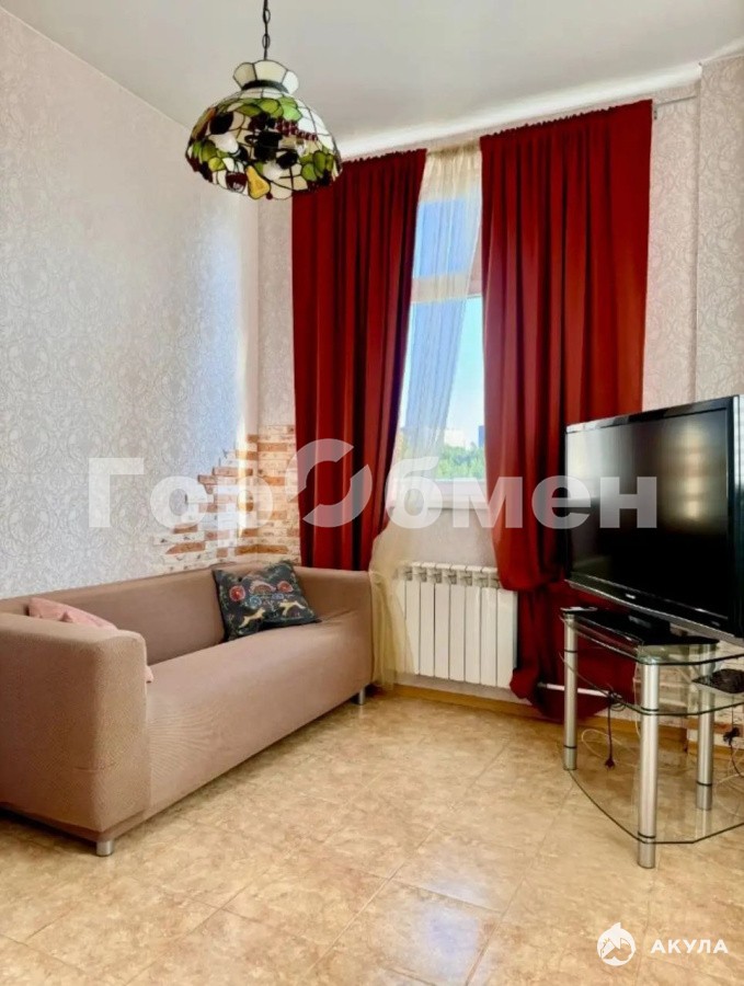 Нестандартная планировка квартиры: большая зона кухни/гостиной, спальная зона с двуспальной кроватью, лоджия, гардеробная!