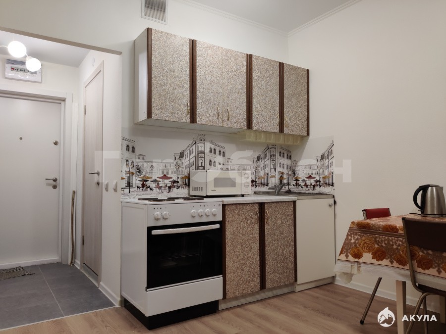 Диван раскладной, аккордеон, ширина 150 см, каркас - ламели. Стиральная машинка, холодильник, электроплита, микроволновая печь.