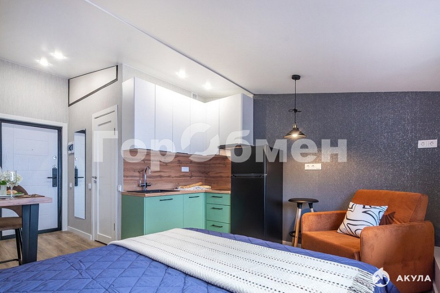 В студии никто не жил! На длительный срок сдаётся шикарная уютная студия! В студии выполнен дизайнерский ремонт, с использованием дорогих современных материалов и все продумано до мелочей! Установлена функциональная, качественная кухня, широкая двуспальная кровать с новым ортопедическим матрасом, кухонный стол-барная стойка, огромное удобное кресло, раскладывающееся в дополнительное полноценное спальное место, большой вместительный шкаф. Качественная входная дверь с электронным замком, который можно открыть не только ключом, но и кодом или отпечатком пальца. Оборудованы дополнительные места для хранения вещей. Новая бытовая техника - холодильник, варочная поверхность, вытяжка. В ванной комнате не только душ но и полноценная ванная, установлена стиральная машина. На кухне комплект необходимой посуды. На окнах жалюзи Blackout. Окна выходят на тихий двор.