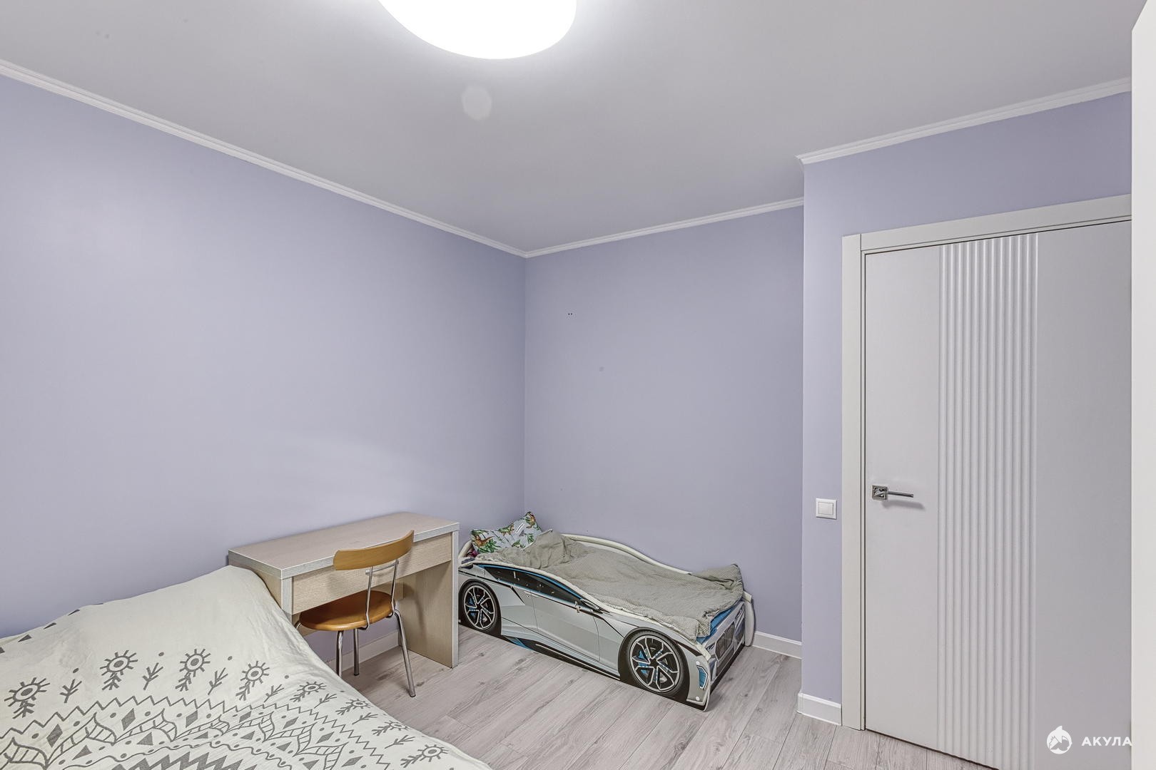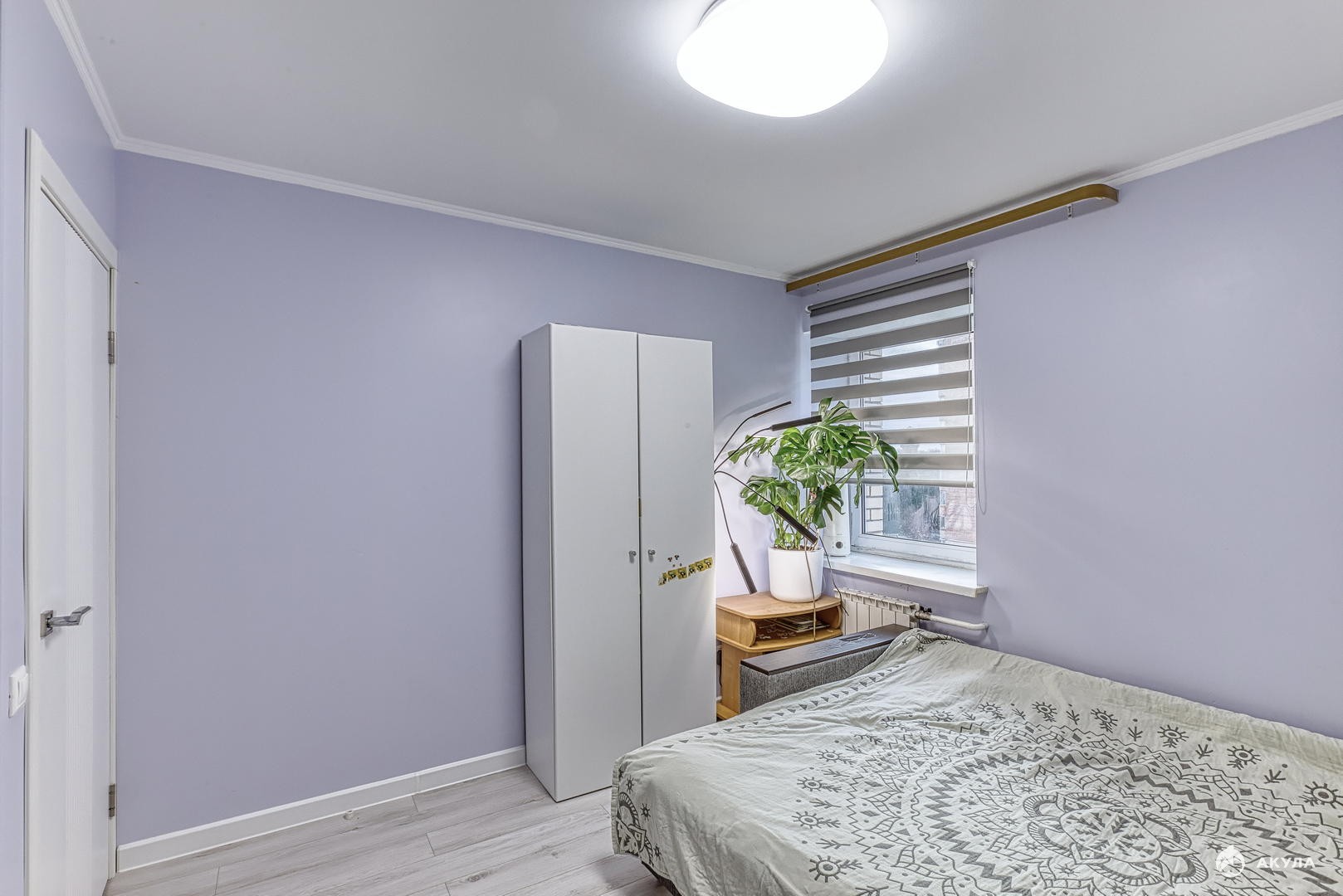Квартира расположена на 9 этаже, две небольшие спальни, большая кухня и просторный хол, оборудованный шкафами для хранения. Кухонный гарнитур, шкафы в прихожей - остаются. Квартира в хорошем состоянии, косметический ремонт был сделан 2 года назад.