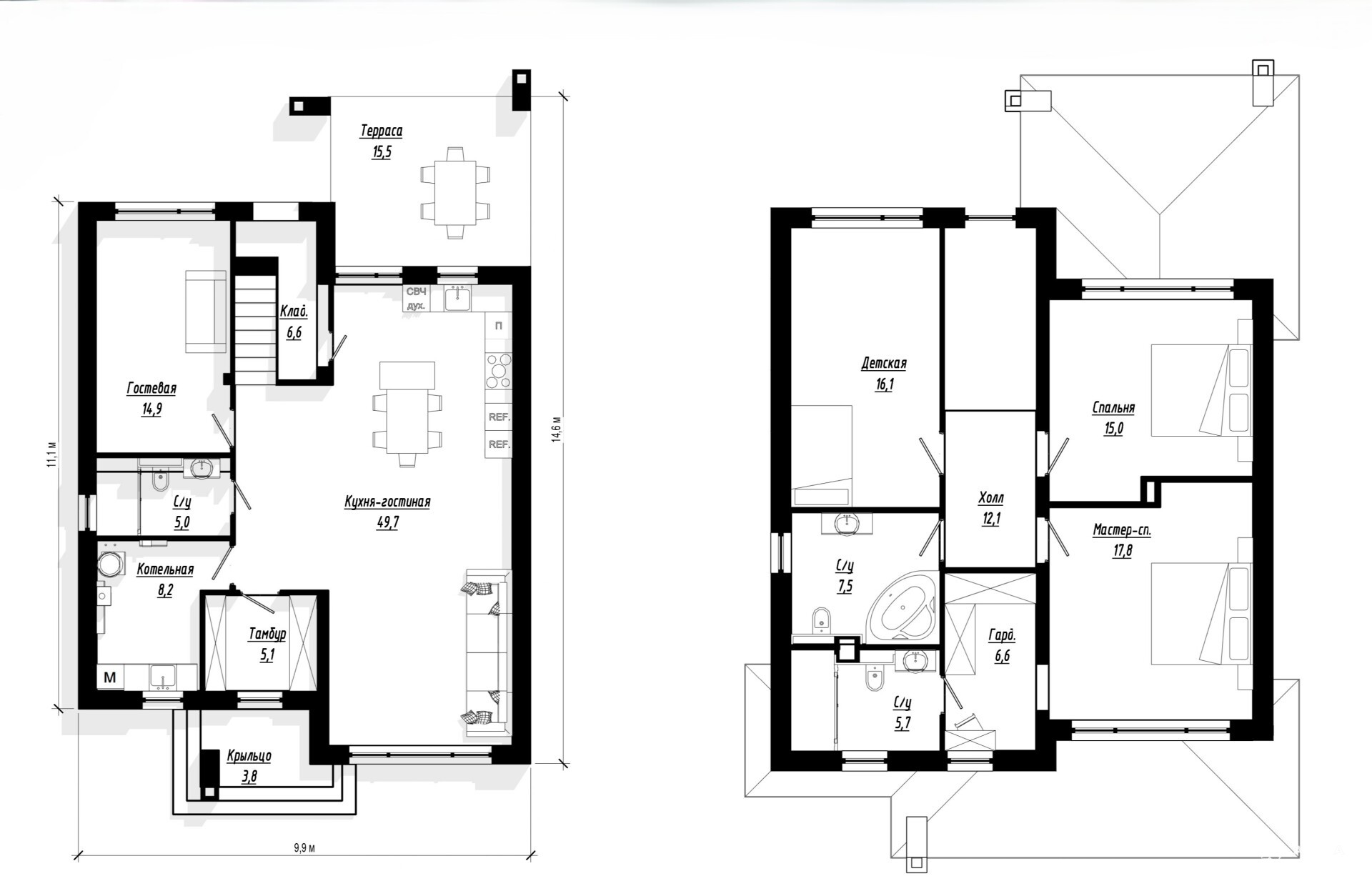 * Просторная мастер-спальня с собственной ванной и гардеробной;