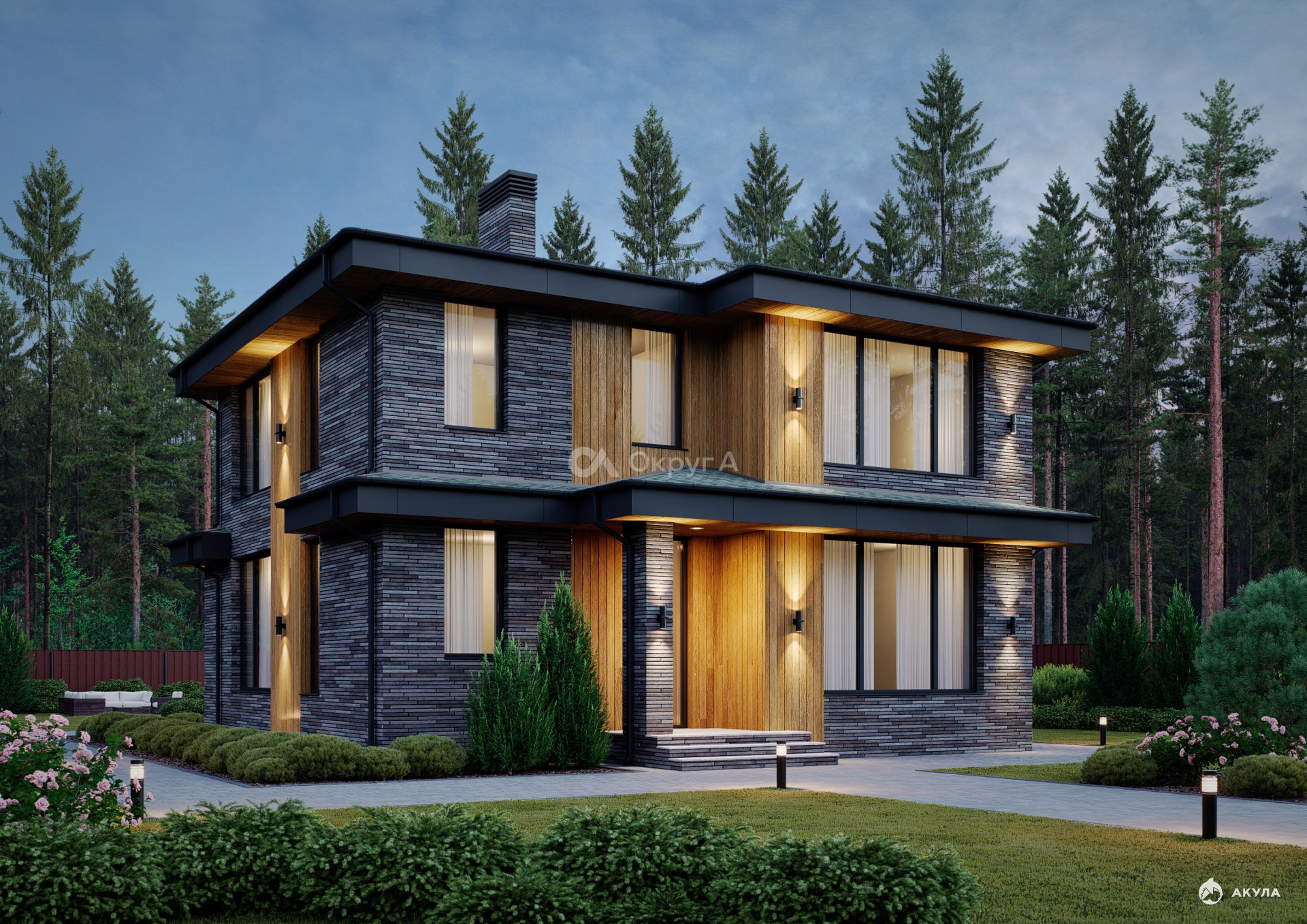 * Посёлок выполнен в едином архитектурном стиле Фрэнка Ллойда Райта: геометрия, широкие свесы, строгая линия и натуральные материалы!