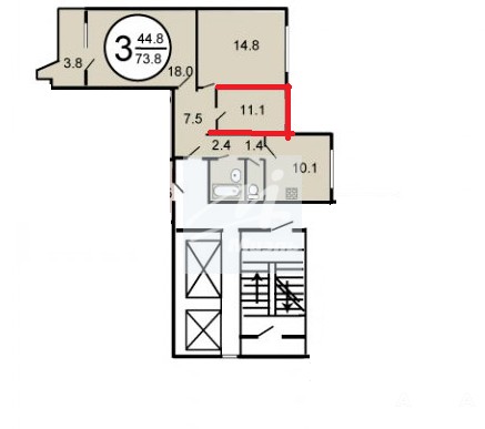 Арт. 550917 Продается комната, в трехкомнатной квартире. 1 взрослый собственник, более 5 лет.