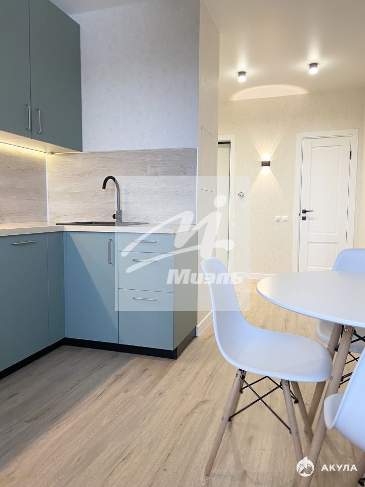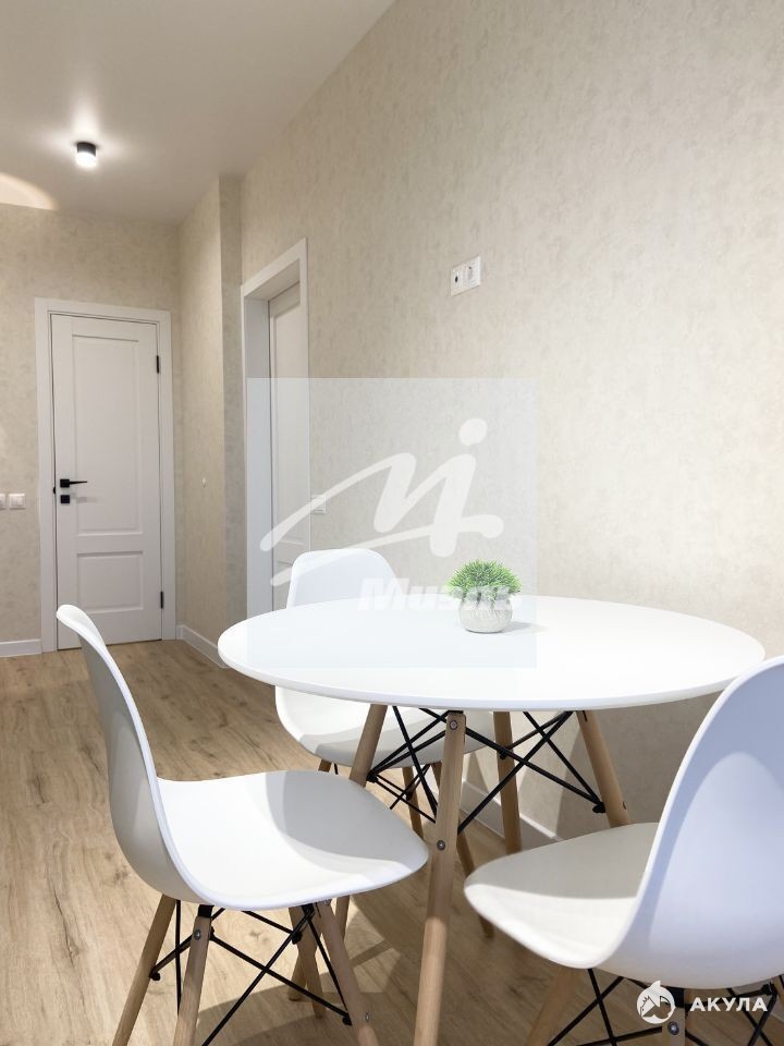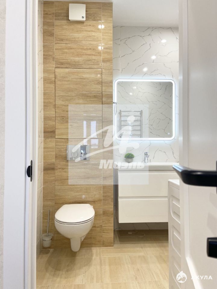 Кухня с балконом, совмещенный санузел. Стильная плитка в санузле и на балконе, полы в комнате, кухне, гардеробной и коридоре уложены единым контуром кварц-винилом. На стенах обои, потолки натяжные. Есть возможность установить раскладывающийся диван на кухне, что позволит сделать евро-двухкомнатную квартиру.