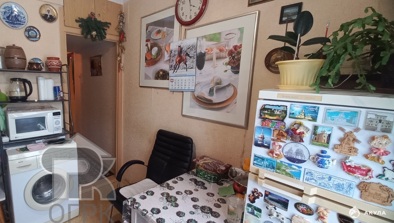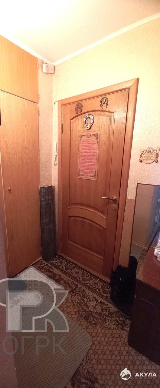 Квартира с вместительным шкафом в прихожей. Санузел совмещенный. Комната просторная 18 м². Кухня компактная, но оснащена всем необходимым, включая стиральную машину, холодильник и микроволновку. В комнате остается стенка с шкафами, полками, гардеробом и сервантом, стол. В кухне остается вся техника, кухонный гарнитур, стол и стулья.